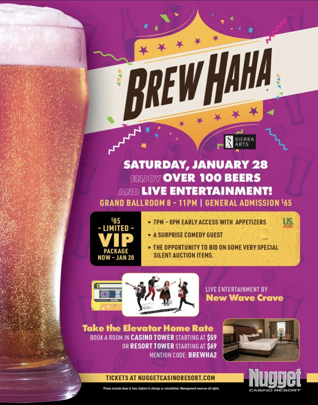 The annual Sierra Arts Foundation Fundraiser! Yours truly is participating in the artists’ village with many other talented people. If you like art and beer, get your tickets asap at the Nugget Casino Resort website.